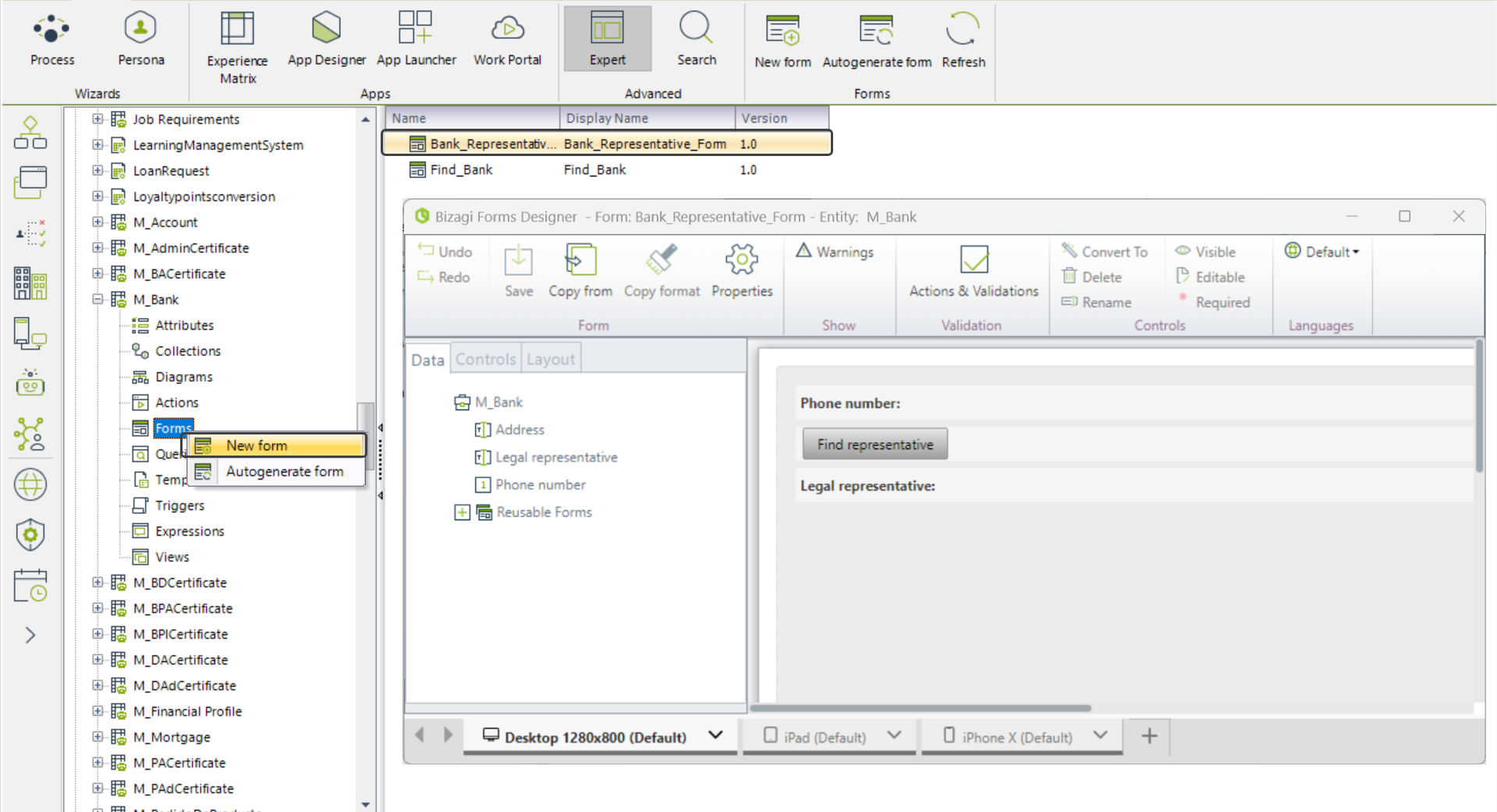 Una Forma de Entidad se define en el nodo de Formas de una entidad: