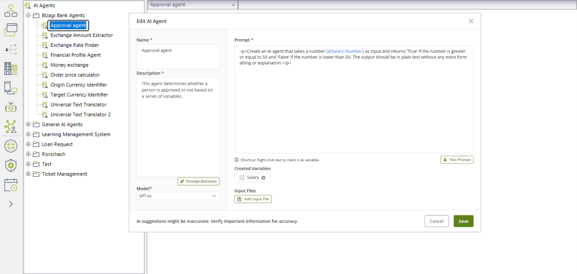 •No es posible ejecutar Agentes de IA en Formas de Consulta, Formas Globales y Formas de Resumen.