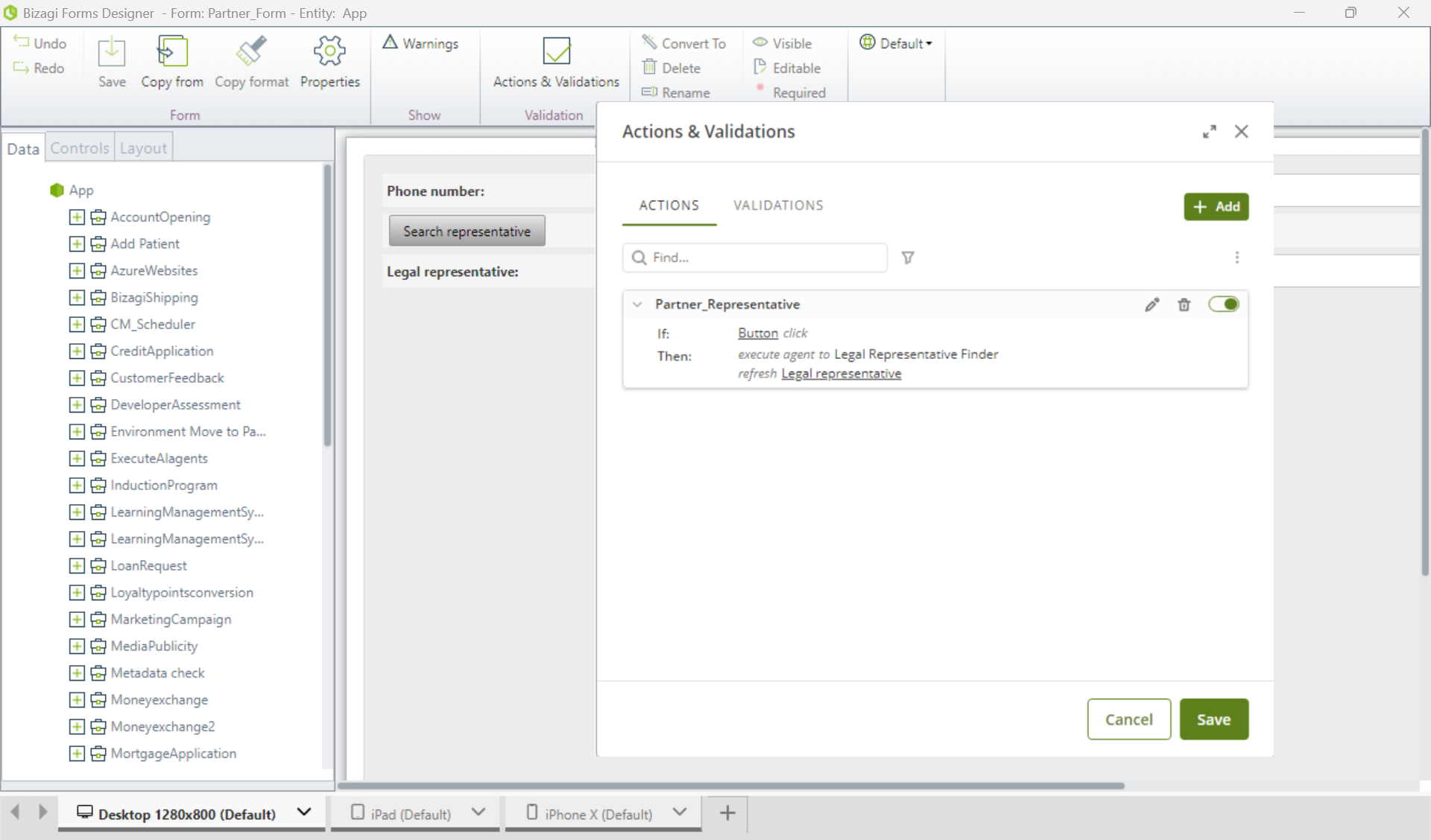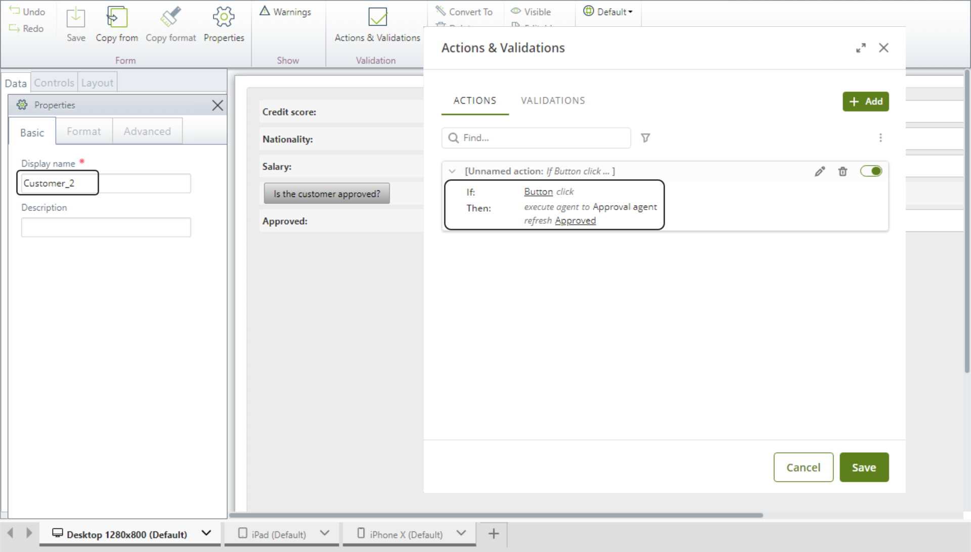 2.Coloque una Forma que use el Agente de IA creado en una Forma de Evento.
