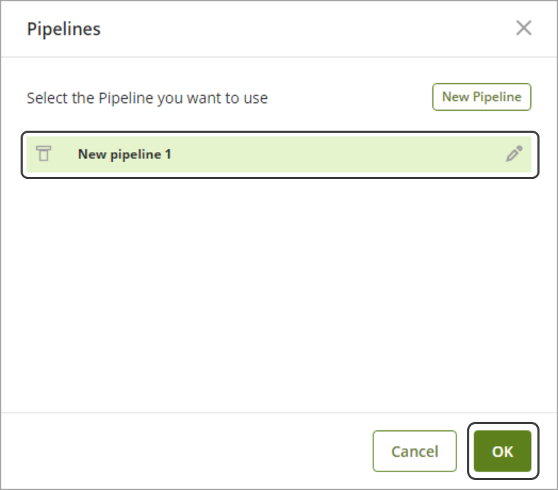 Recuerde que también puede crear o editar pipelines desde la Vista de Experto. |
