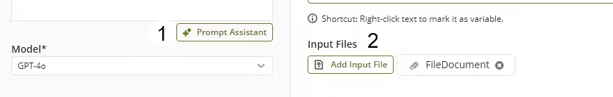 •Cada vez que se ejecute el Asistente de Prompt, las variables de archivo de entrada existentes serán reemplazadas por las nuevas.