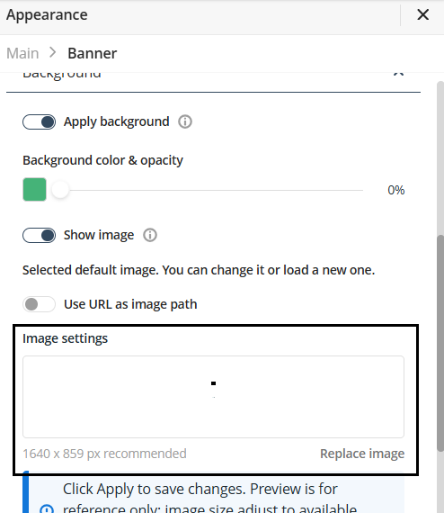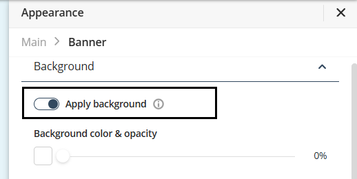 Puede aplicar un fondo al banner. Para hacerlo, active el interruptor Aplicar fondo.