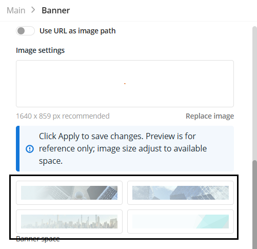 Puede modificar el espacio que ocupa la imagen de fondo del banner. Puede elegir entre: