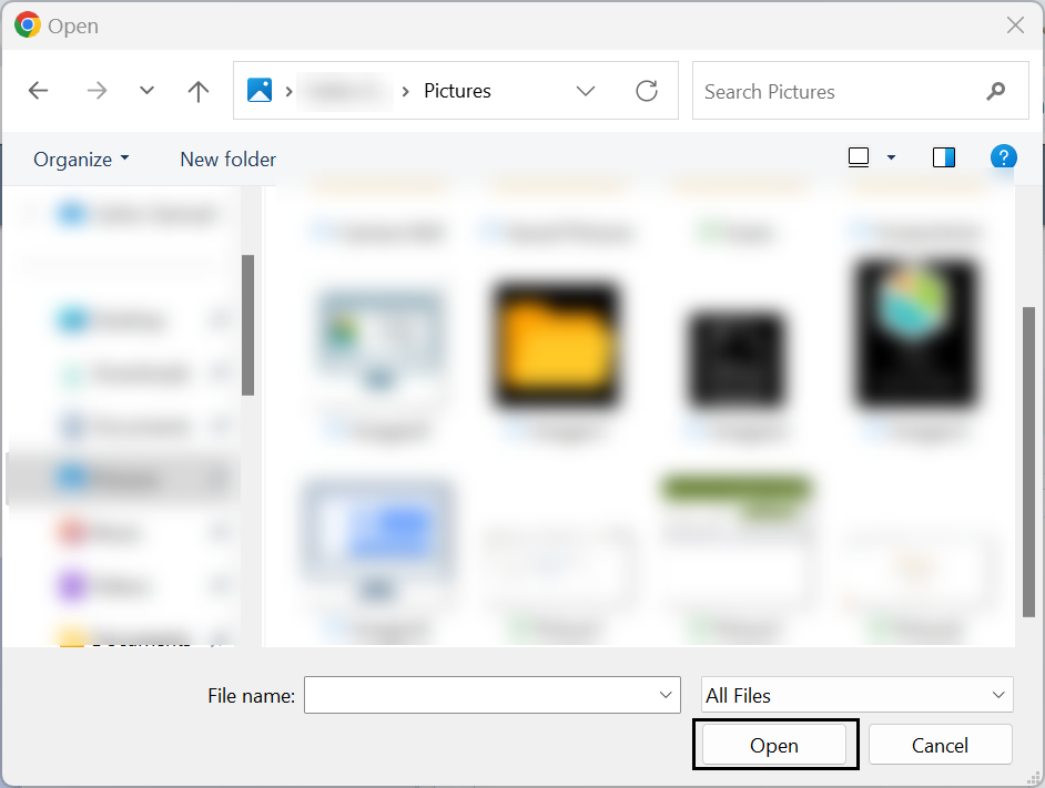 Seleccione la imagen desde su dispositivo y haga clic en el botón Abrir.
