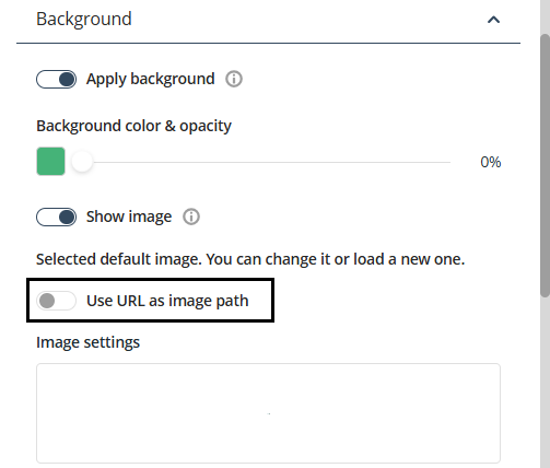 Al activar esta opción, aparecerá el cuadro de texto Escriba la URL de la imagen. Pegue ahí la URL de la imagen que desea utilizar. La URL debe llevar a una imagen cargada y accesible en internet.