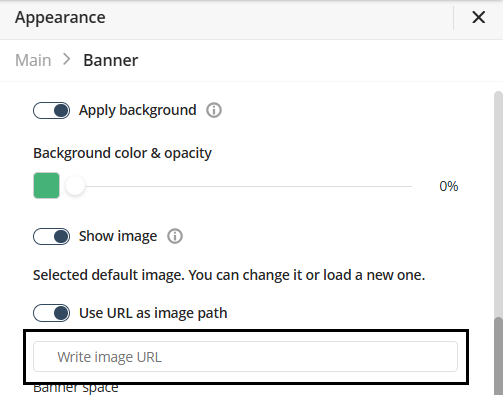 Una vez activado, podrá seleccionar entre un color o una imagen como fondo del banner.