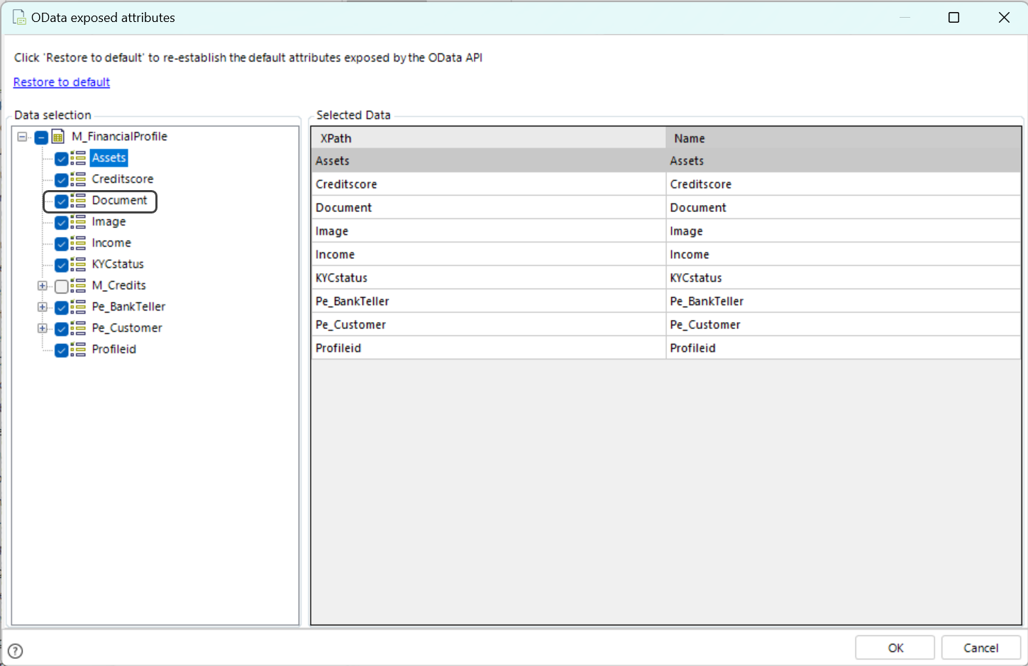 Tenga en cuenta que, para que esta función funcione correctamente, debe habilitar el atributo de tipo Archivo como un atributo expuesto en la sección de Atributos Expuestos de OData, dentro del apartado de Entidades en la Vista de Experto o a través de la Matriz de Experiencia.