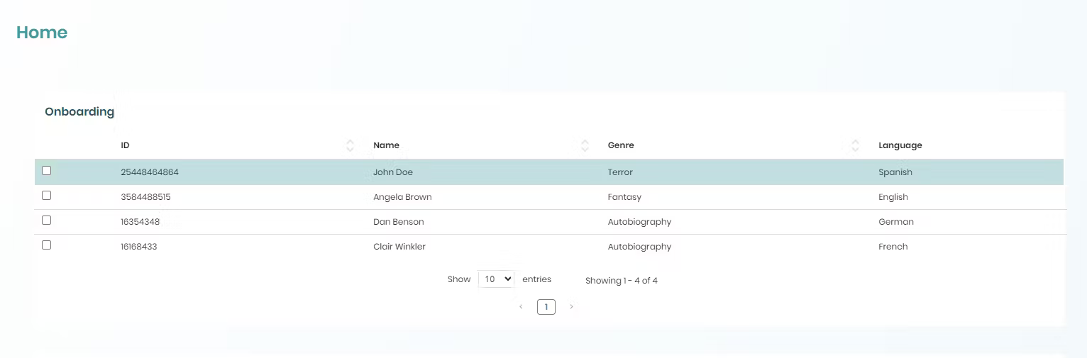En el siguiente ejemplo, puede ver cómo se ve el control de Tabla de datos al agregar contenido dinámico.