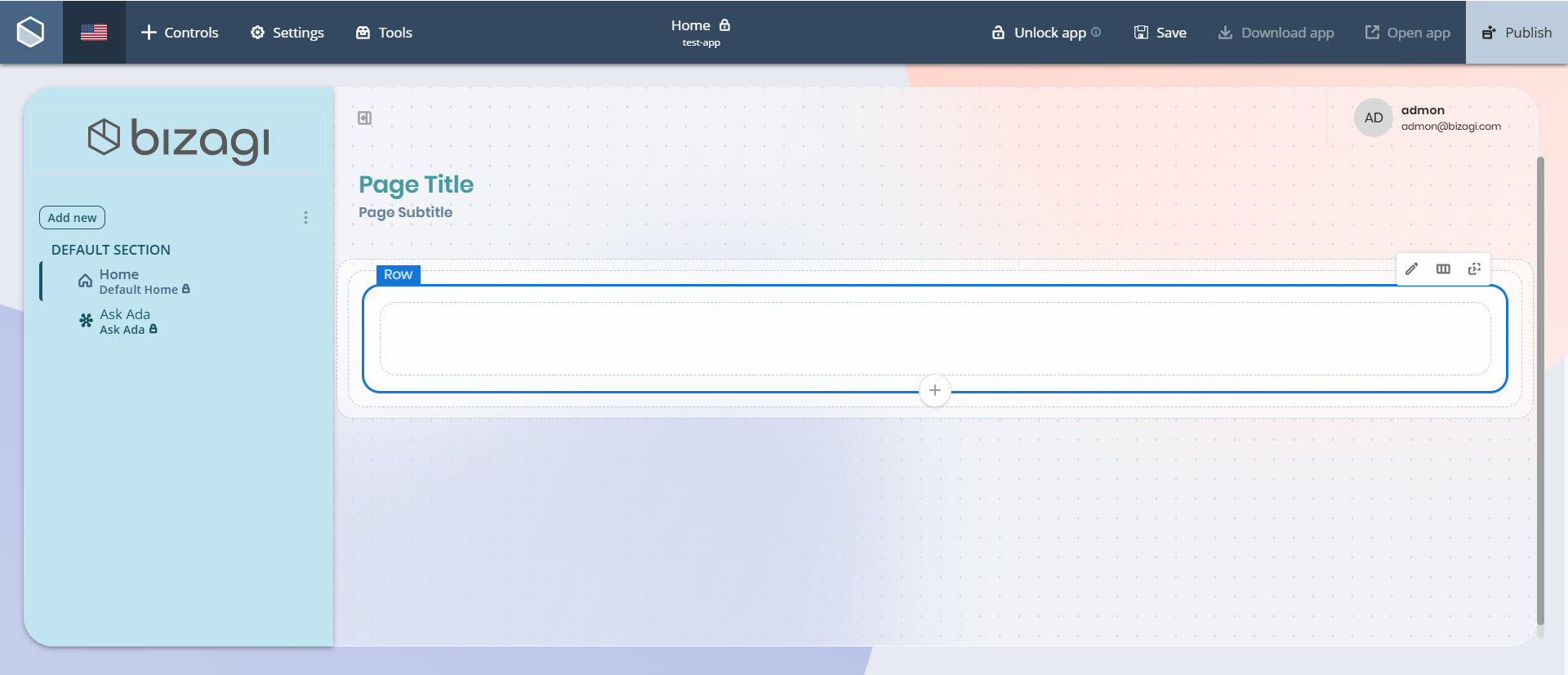 Su app incluye una sección principal denominada Contenido, que contiene todas las filas y columnas donde se ubican los Controles.
