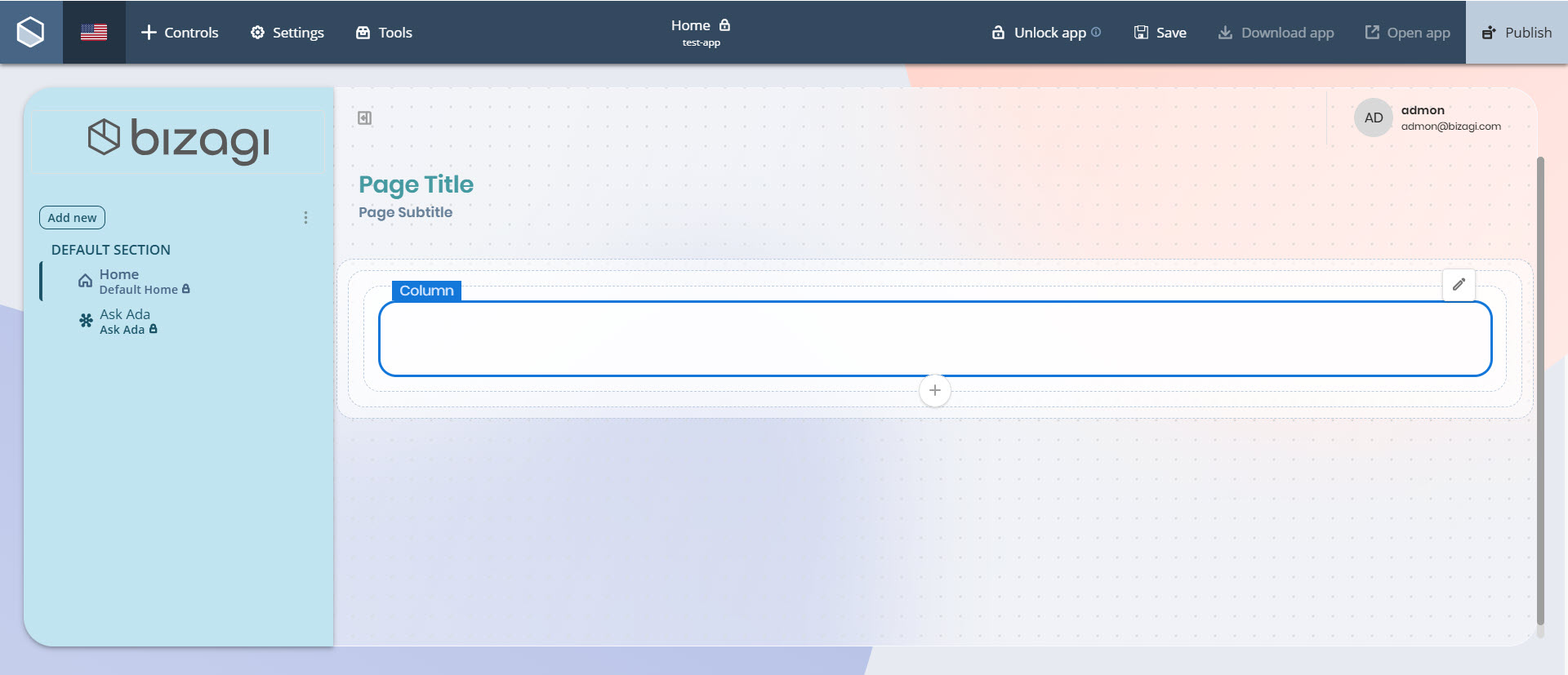 Los contenedores Columna se colocan dentro de las Filas. Estos contienen los Controles utilizados en su app.