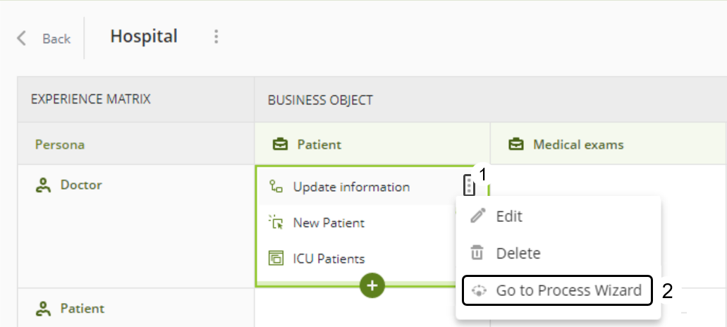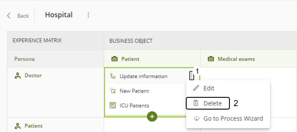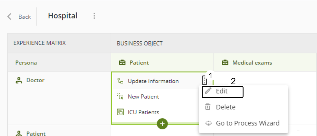 Una vez haya definido las Personas y Objetos de Negocio de su Matriz de Experiencia, debe definir sus Interacciones (o relaciones) en cada intersección.