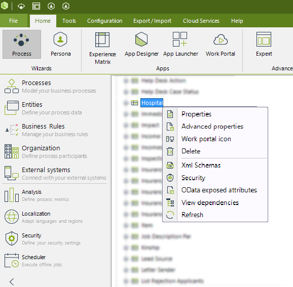 •Forma visual: Corresponde a la forma utilizada para mostrar la información de la entidad cuando la esté administrando en el Portal de Trabajo utilizando la opción Admin > Entidades. Los controles agregados a la forma se transformarán en columnas de la tabla mostrada en el Portal de Trabajo. Aprendan más sobre la administración de entidades Paramétricas Siguiendo este link.