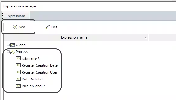 O puede seleccionar la pestaña Editar y crear una nueva. En ese caso, incluya un elemento de expresión en la regla de negocio y asígnele un nombre.