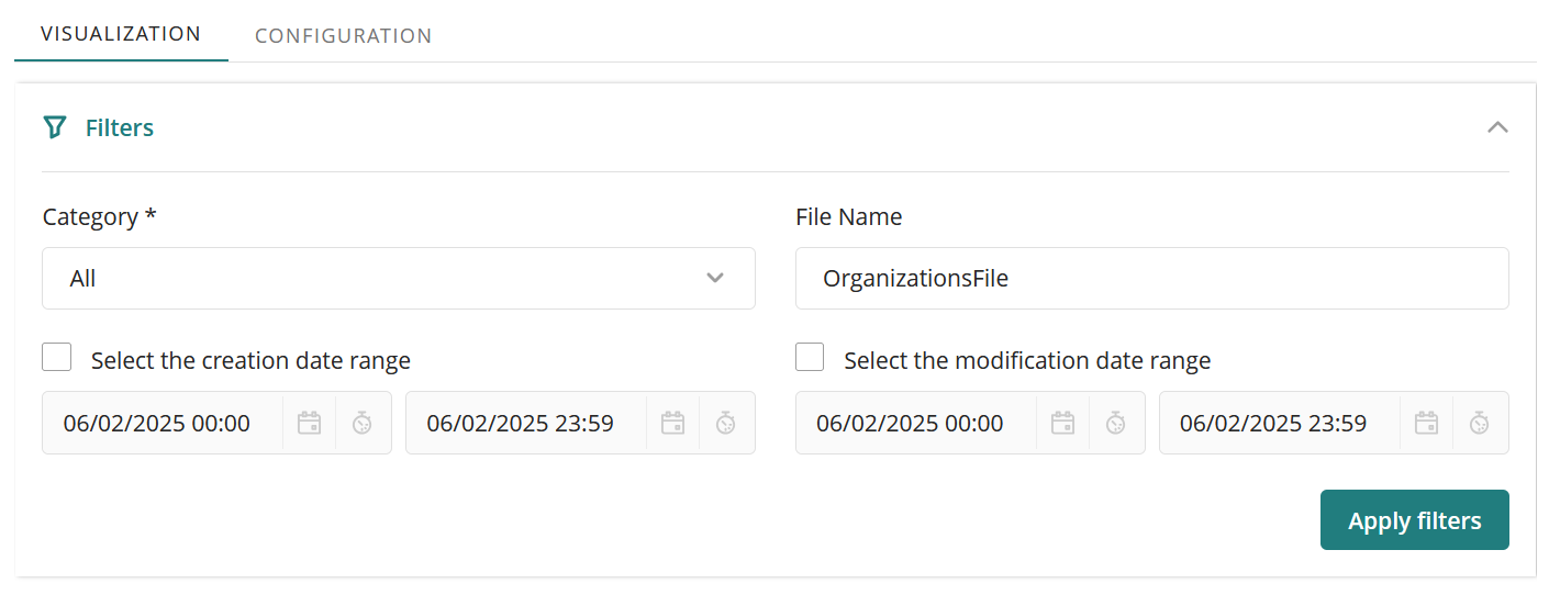 2.En la pestaña Visualización, complete los campos para filtrar los archivos de rastreo y haga clic en el botón Aplicar filtros.