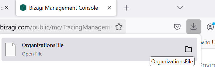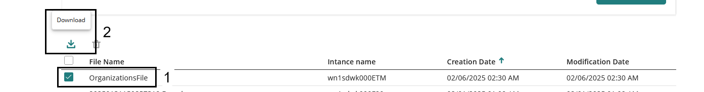 3.Seleccione el archivo de rastreo OrganizationsFile y haga clic en el botón Descargar.
