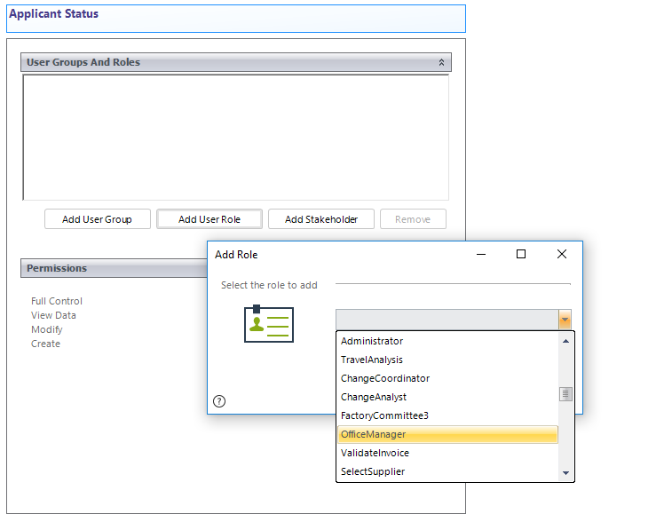 4. En la nueva ventana seleccione el Rol a incluir desde la lista desplegable, y luego, dé clic en OK.